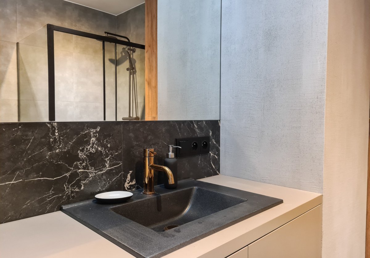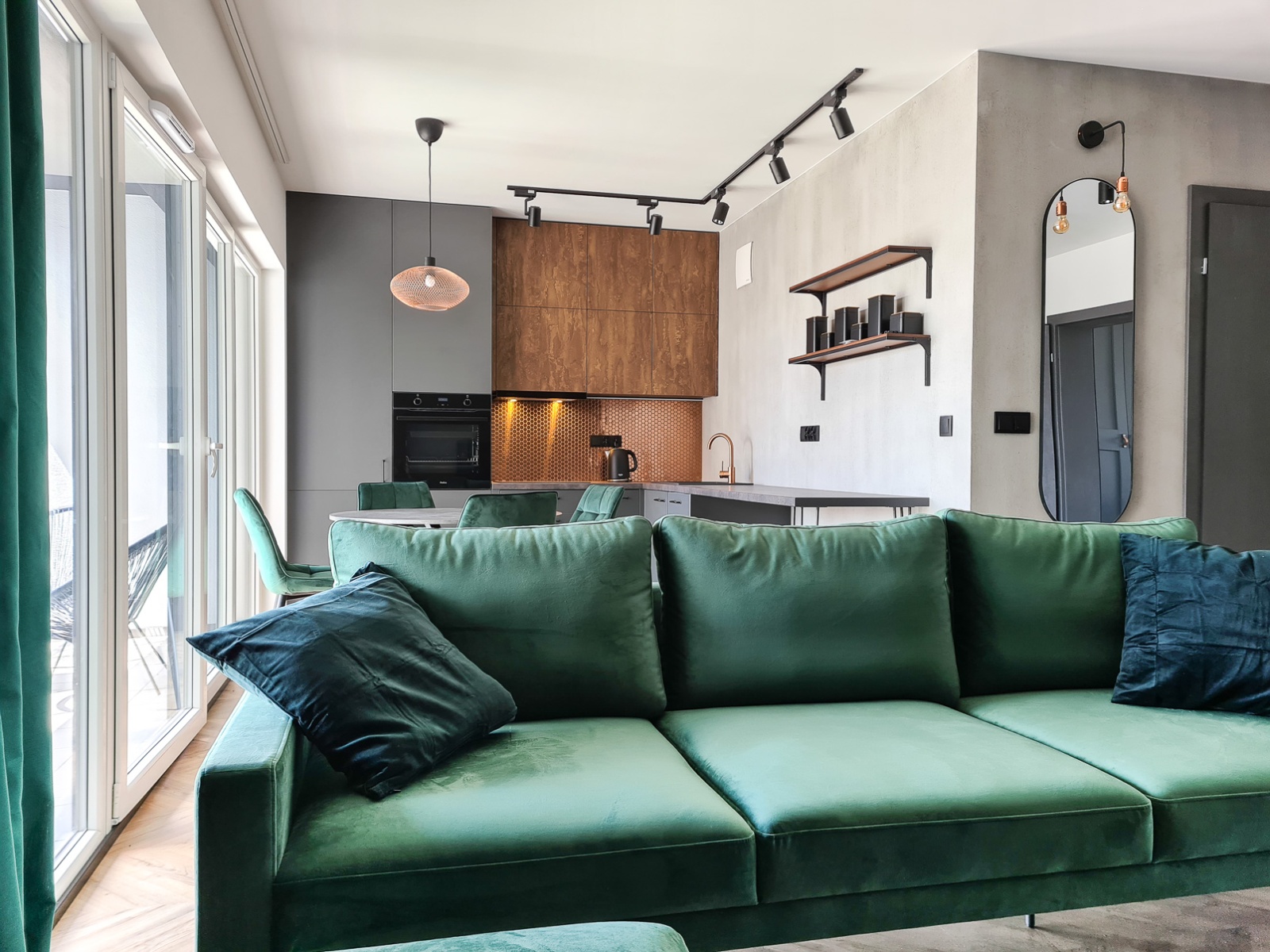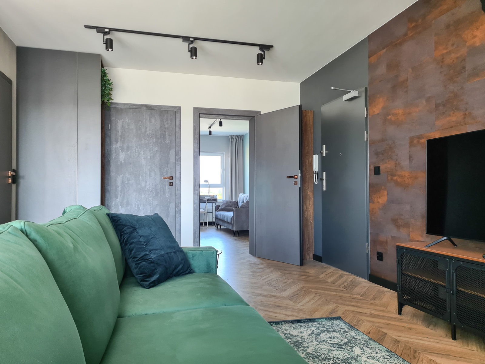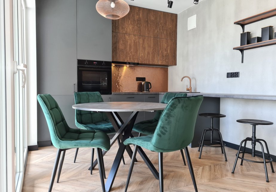 The apartment is bright, well-lit, and finished in a modern style with attention to detail.