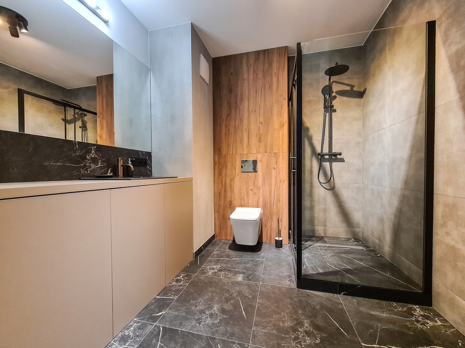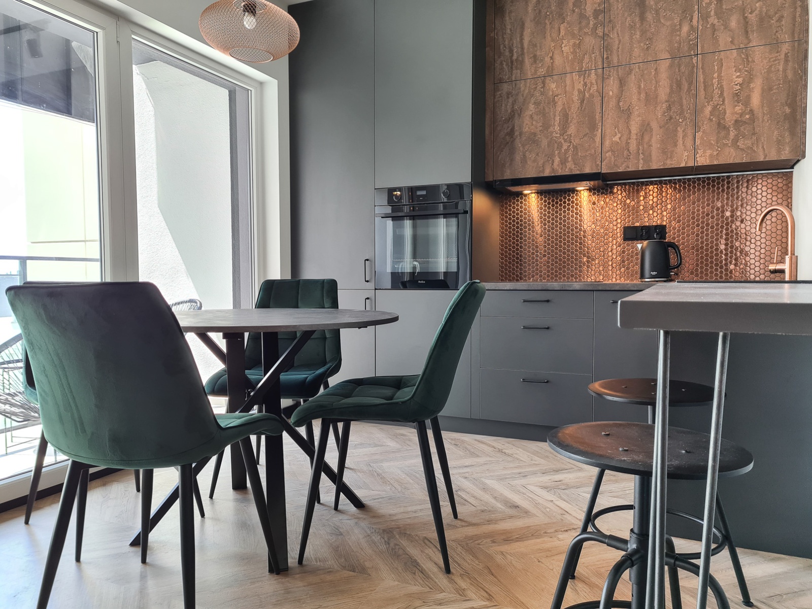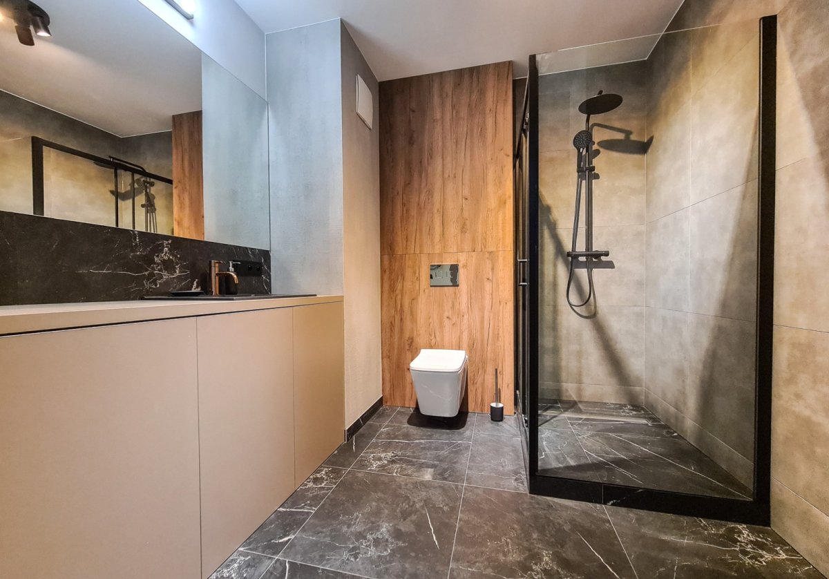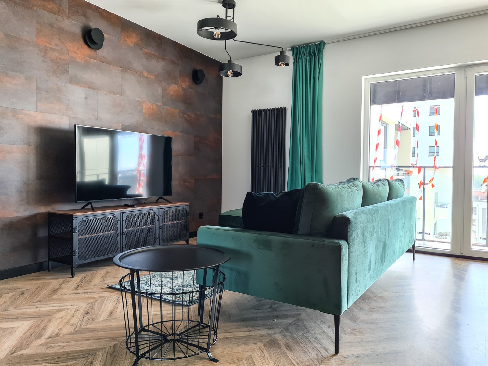 The apartment is bright, well-lit, and finished in a modern style with attention to detail.
