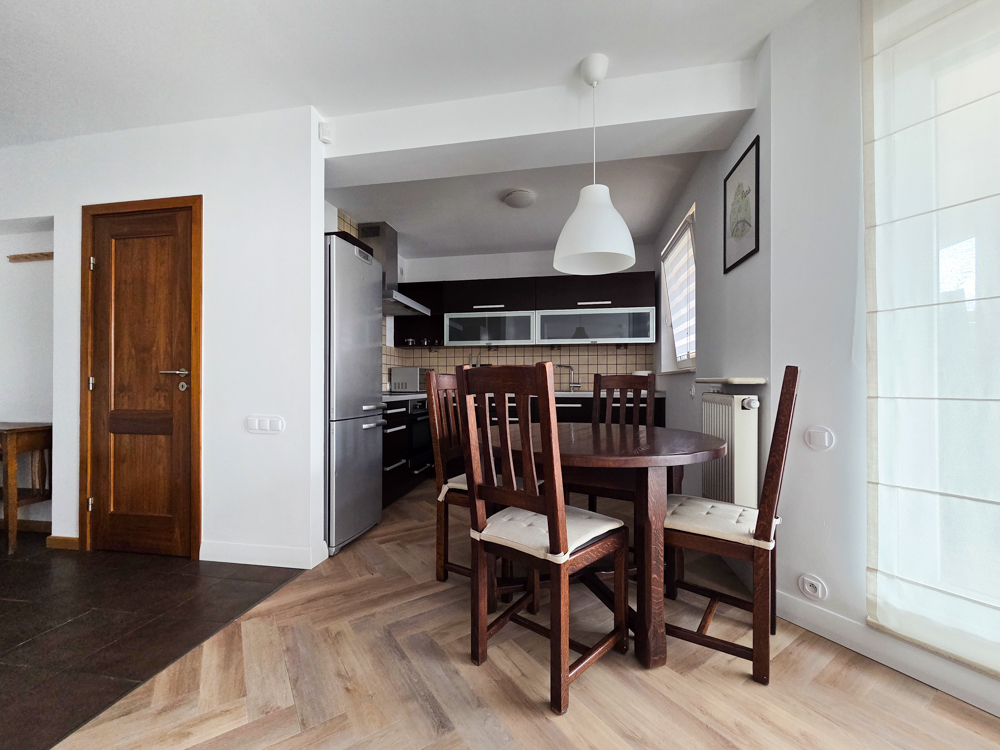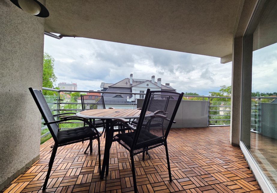 For rent: a spacious apartment with an area of 84 m², located on the 3rd floor of a building with an elevator, in a gated community in the Grunwald district of Poznań. The highlight of this property is the large terrace with a panoramic view – a perfect spot for relaxation and leisure. The apartment consists of a bright living room with access to the terrace and an open kitchen fully equipped with all necessary appliances: dishwasher, oven, hob, hood, and fridge. The kitchen is functional and meets the expectations of even demanding tenants. There are two separate bedrooms: one with a double bed, the other with a sofa bed – ideal for a family or a couple working remotely who need a home office. The bathroom is finished to a high standard and offers both a bathtub and a shower. An additional advantage is the utility/laundry room equipped with a washing machine. The apartment is part of a modern, secure estate with controlled access. Nearby you’ll find grocery stores, service points, and public transport stops. Access to tram and bus lines ensures fast connections to the city center, while the area offers great conditions for everyday outdoor activities thanks to its green surroundings and walking paths. Costs: Monthly rent: 3600 PLN Administrative fees: approx. 1700 PLN (including heating and water advances) Deposit: 7000 PLN Electricity paid every 2 months based on usage. This offer is perfect for those who value space and views – ideal for a couple, a small family, or remote-working professionals seeking comfort and tranquility in a great location. Minimum lease term: 12 months. Occasional lease preferred. przestronny apartament w Poznaniu w dzielnicy Grunwald znajdujący się na zamkniętym osiedlu. Największym atutem nieruchomości jest duży taras z imponującym widokiem.