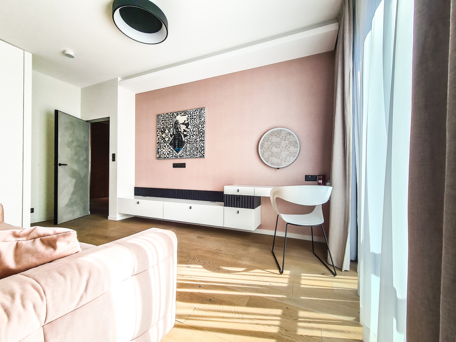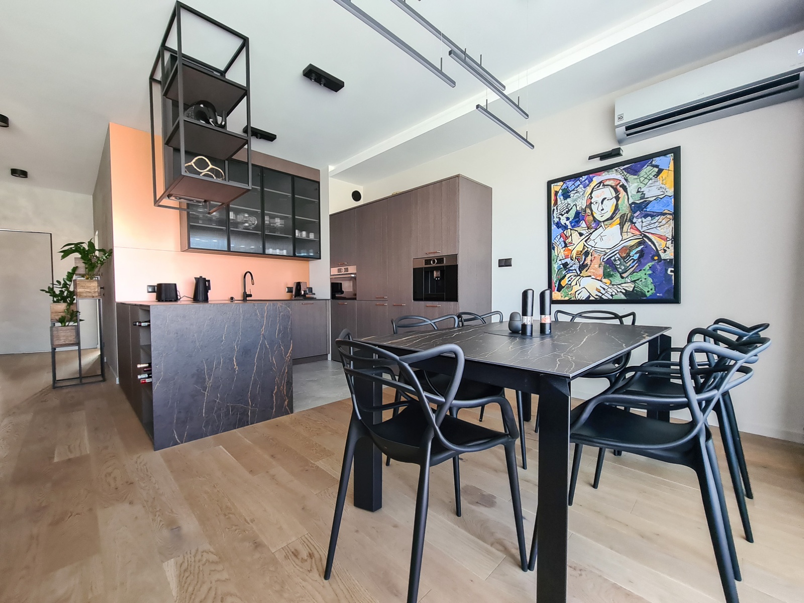 Finished to a high standard with modern lighting – including wall lights, pendant lamps, and spotlights – allowing for various light scenarios. One parking space in the underground garage is included in the rental price.