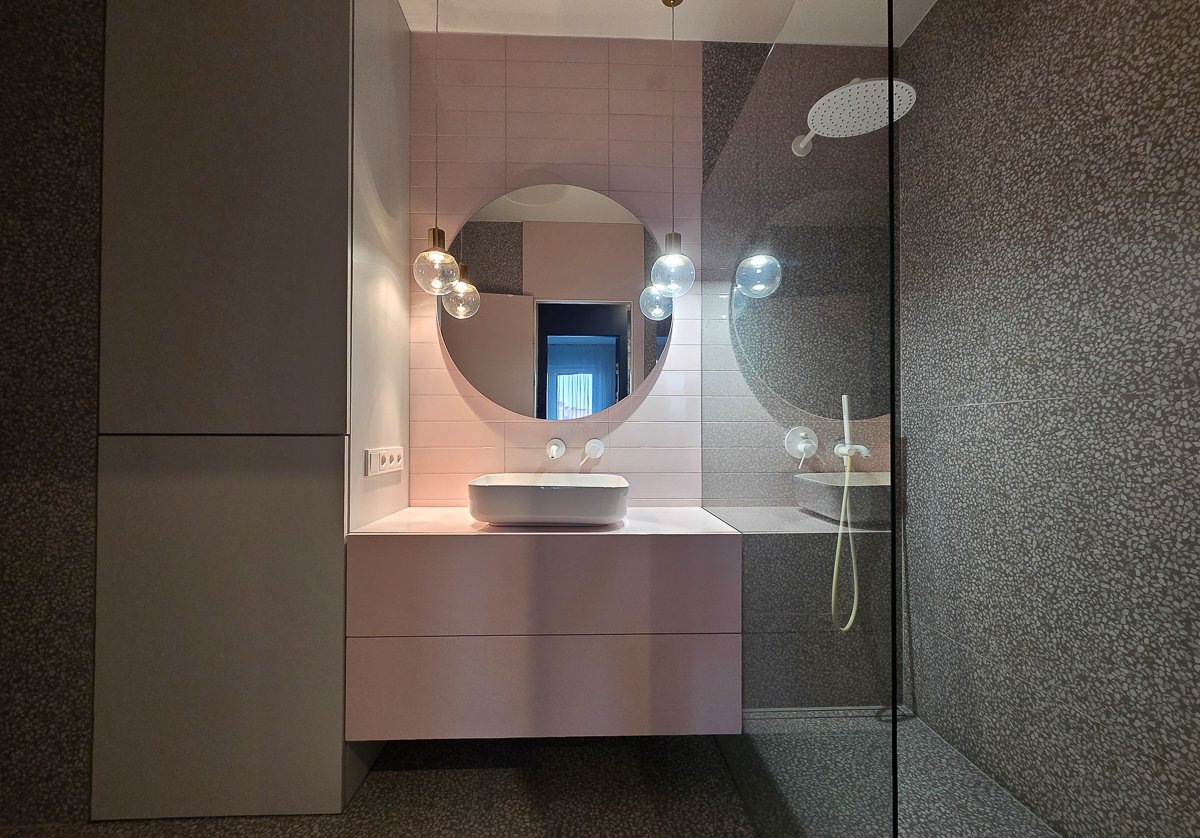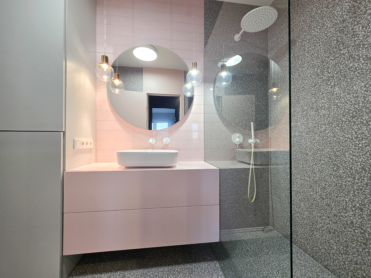 - a bathroom with a shower