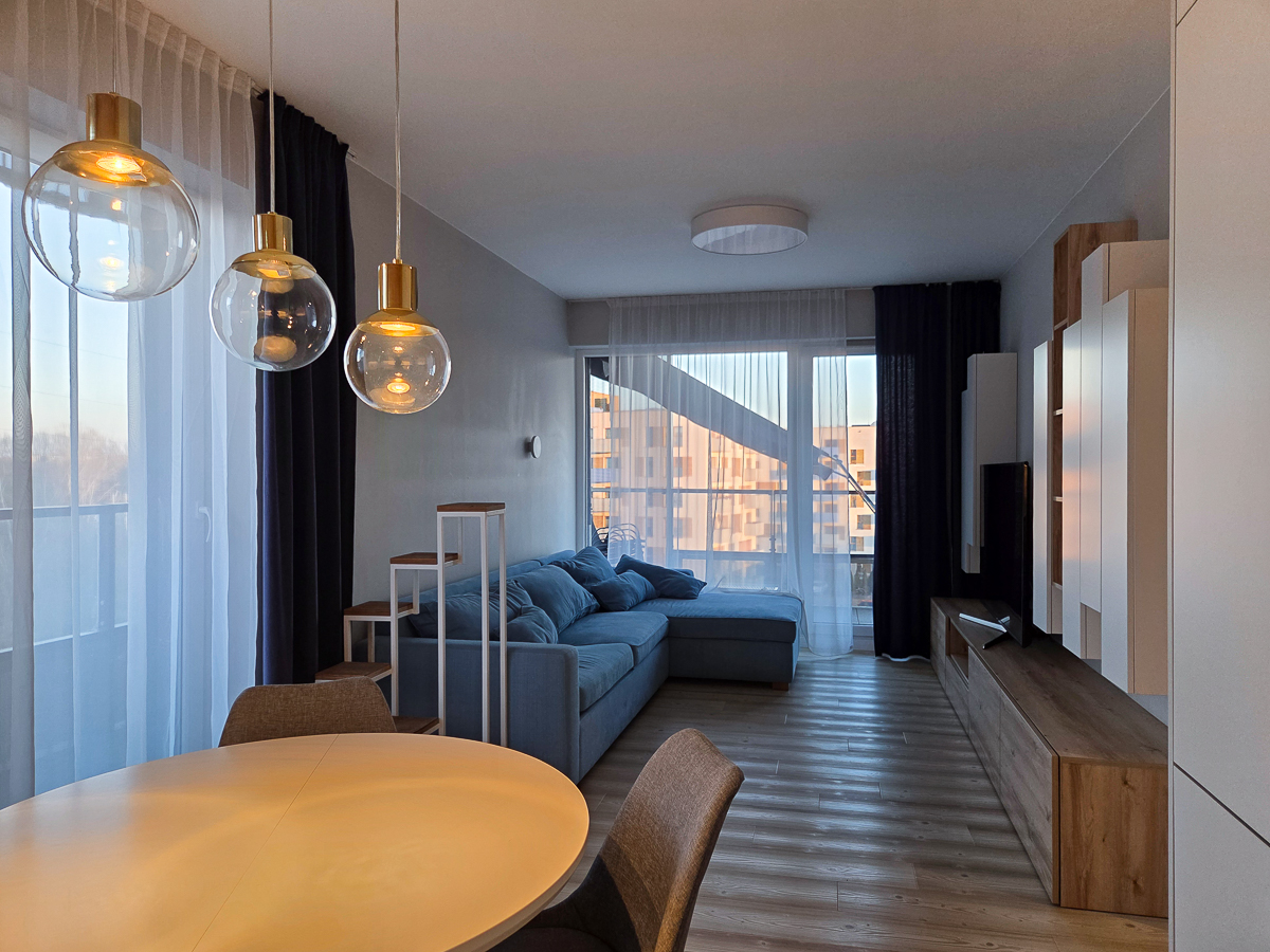 For rent: a functional 3-room apartment with an area of 56 m², designed by an architect, featuring an impressive nearly 20 m² balcony with a north-east-south exposure. It's a perfect place to relax, enjoy your morning coffee or meet with friends. The apartment is located in the sought-after Botanic Estate, known for its peaceful atmosphere and proximity to nature.